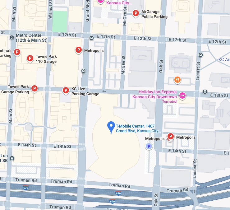 Once parked, there is a short walk to the T-Mobile Center entrance. Kansas City traffic is notoriously busy around T-Mobile Center during popular events. With these in mind, please allow a little extra time to your journey.